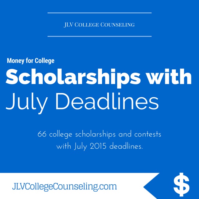Attending college can be quite expensive for students and their families. Luckily, there are many college scholarships and contests available to help pay for a college education. Students should seek out and apply for scholarships in which they meet the eligibility requirements. Below are 66 college scholarships and contests with July 2015 deadlines. Only brief information about each scholarship is listed. Therefore, students are encouraged to visit the scholarship websites to get further details about eligibility and requirements.