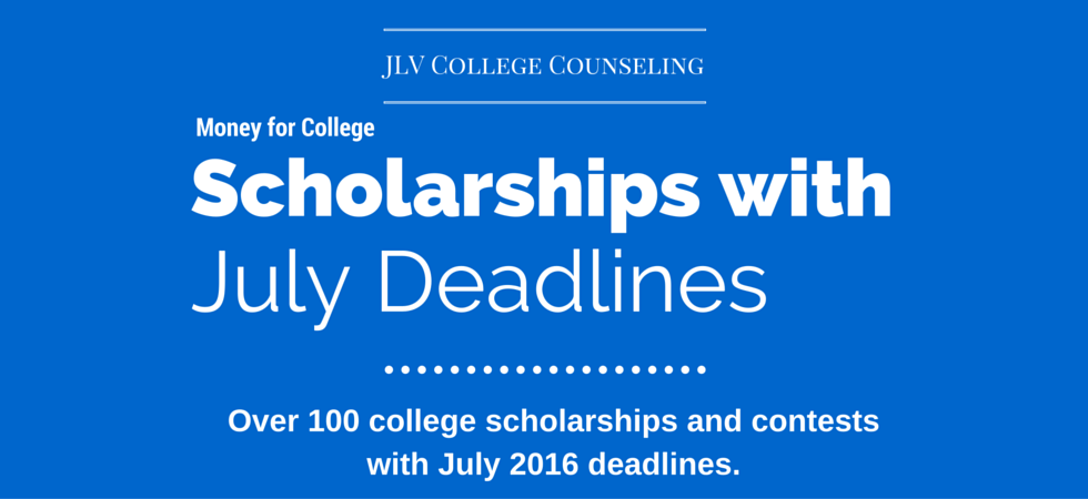 Attending college can be quite expensive for students and their families. Luckily, there are many college scholarships and contests available to help pay for a college education. Students should seek out and apply for scholarships in which they meet the eligibility requirements. Below are a handful of scholarships with July 2016 deadlines. To see the full list of Scholarships with July deadlines, click here.